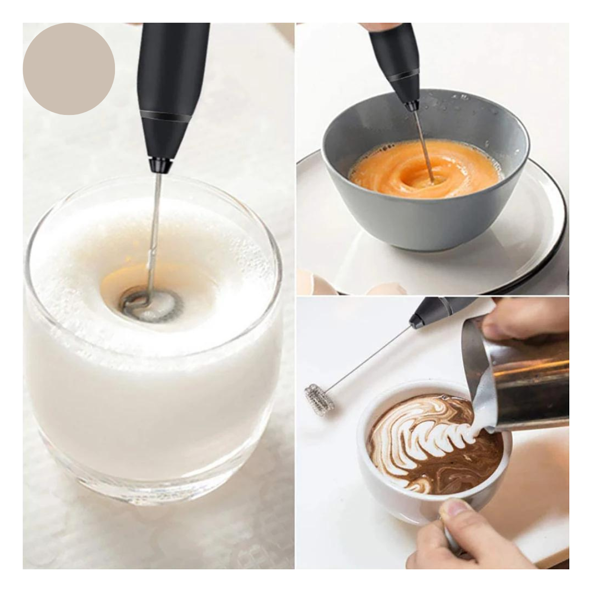 - Utilidad Versátil: No solo es un espumador de leche, sino un creador de bebidas versátil. Desde capuchinos, café con leche hasta chocolate caliente, frappés, batidos y cócteles, este espumador es tu compañero perfecto para una amplia variedad de bebidas de calidad profesional.